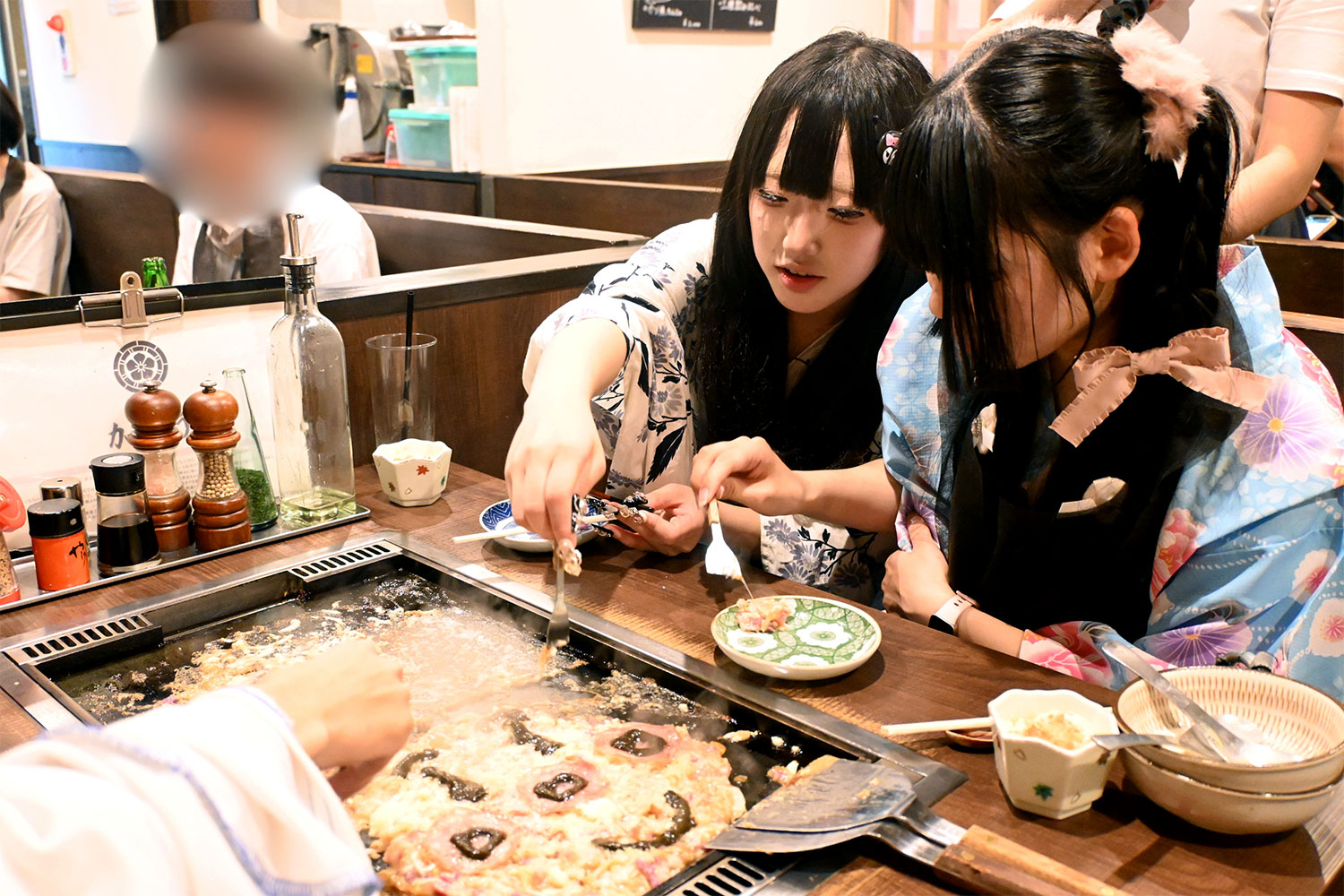 夕食は東京下町の名物・もんじゃ焼き。初挑戦のあいさんは